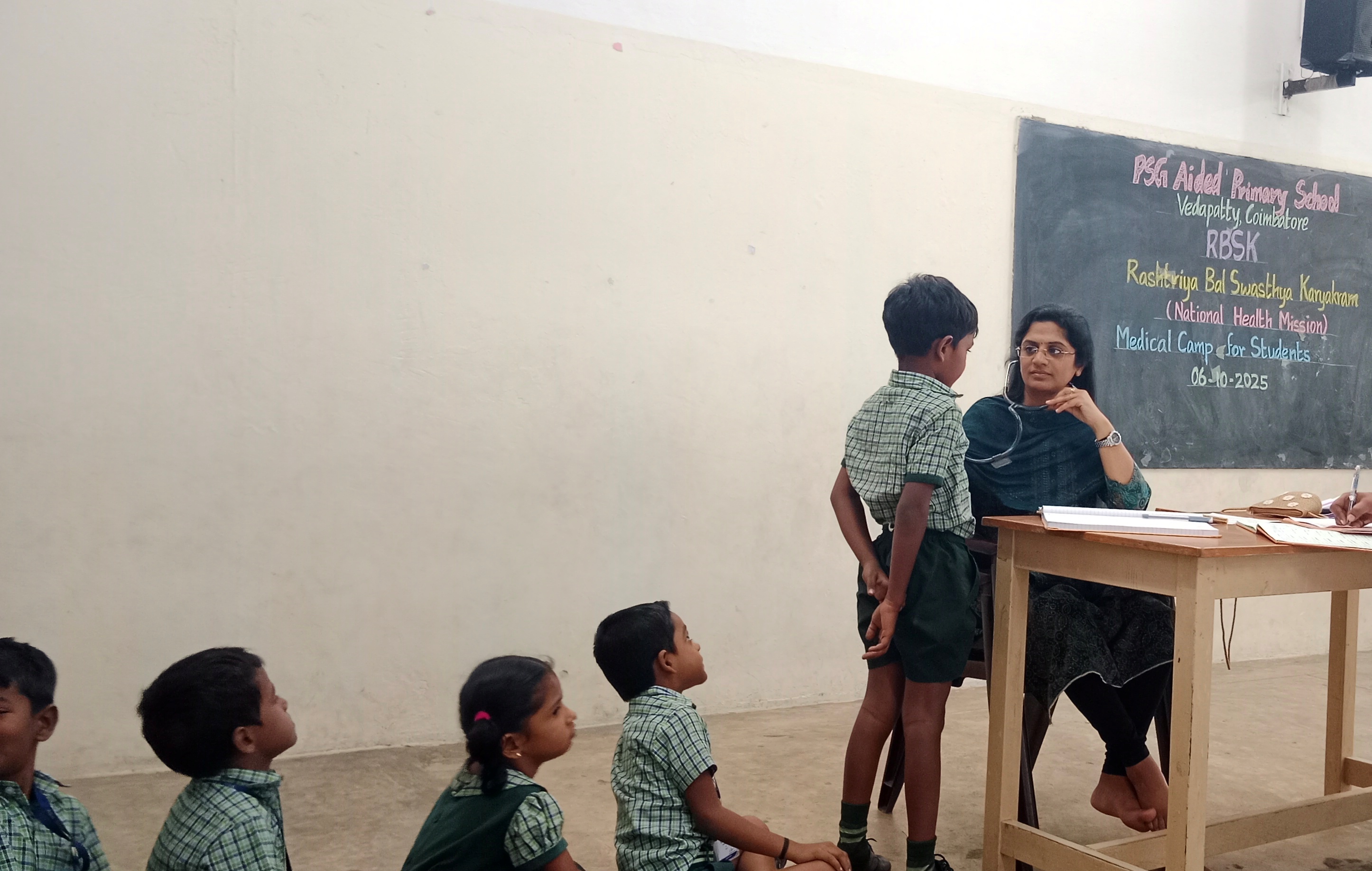 A doctor along with the staff from PSG Rural Health Centre, Vedapatti, conducted an “Health and Hygiene” programme for pupils of Stds III to V on 15th July 2025, at the school premises
